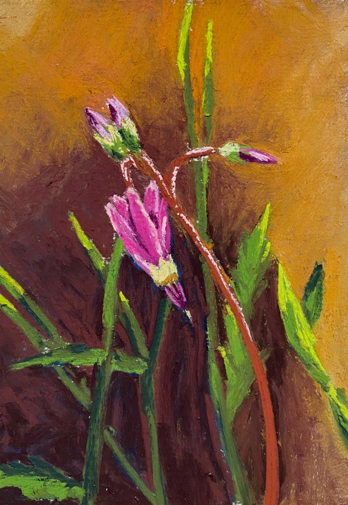 At the Base of Quandry Peak, Pastel on sanded paper, 9×12″Shooting Star, Pastel on sanded paper, 5×7″Water Lily 1, Colored Pencil on Canson Mi-Teintes, 6×6″